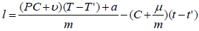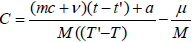 where u was the equivalent in water of the vase that constituted the calorimeter, P the weight of liquid employed, C its specific heat, m the weight of mercury, t and t' its initial and final temperatures, and m and c, the thermal equivalent of the vase it contained it and its specific heat, T and T' the initial and final temperatures, and a the heat lost during the experience.32