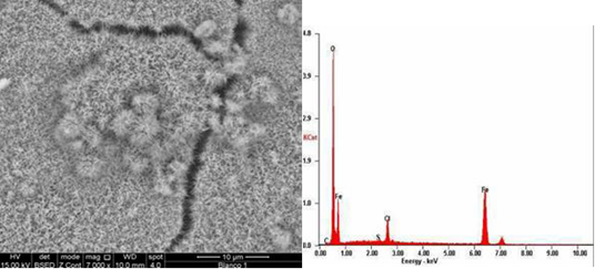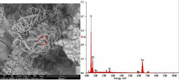 Se obtuvo una correlación de las morfologías y de los espectros de EDX que demostraron la presencia de oxihidróxidos de hierro como principales constituyentes.