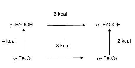 Mediante la aplicación de valoraciones termodinámicas según reporta la literatura se indica que primero se generó la lepidocrocita (g- FeOOH) ya que en su formación desprendió una cantidad de energía que garantizó su identificación por DRX. Con un cambio en su estructura cristalina se formó la goethita (a- FeOOH) como segunda fase. Lo anterior se relaciona porque la goethita liberó una cantidad de energía superior a la primera fase, lo que le brindó una estabilidad mayor como sólido cristalino. (Fig. 7) 30