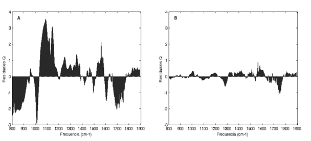 Cuando se compara el espectro infrarrojo de la muestra problema con el de una muestra de referencia se observa que mediante la inspección visual resulta difícil discriminar la muestra problema (Figura 11).