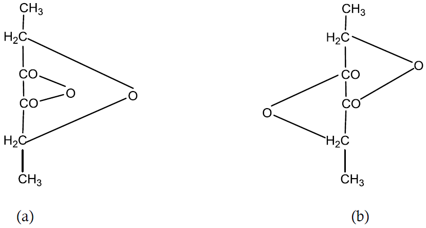 To Henry this assumption required depicting how the formula of lactic acid was able to represent this ether. One possibility that had been assumed was that the ether was formed by an internal etherification between the -OH and the -COOH groups of lactic acids; this elegant explanation described very well the result of the thermal splitting of lactide into acetic acid and CO. Nevertheless, Henry believed that the formula C3H4O2 was unable to express the molecular structure of lactide because it made it an isomer of acrylic acid, which was solid at room temperature and boiled at about 140°C, while lactide did it at 220°C. It was hard to explain this difference in volatility for two bodies having the same molecular mass (Henry, 1874b).