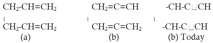 According to Henry the global formulas of diallyl (a) and dipropargyl (b) corresponded to respectively