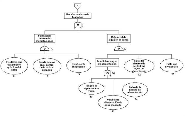 Es válido precisar el hecho de que el fallo de los nivostatos del sistema automático de control del nivel de agua en el domo y el insuficiente tratamiento de la misma, así como la insuficiente inspección, aparecen como sucesos intermedios o sucesos básicos. En varias ocasiones, asociados a la posible explosión de la caldera por explosión del domo y por el recalentamiento de los tubos, (explosión física), lo cual evidencia su papel trascendental en la seguridad de la operación.