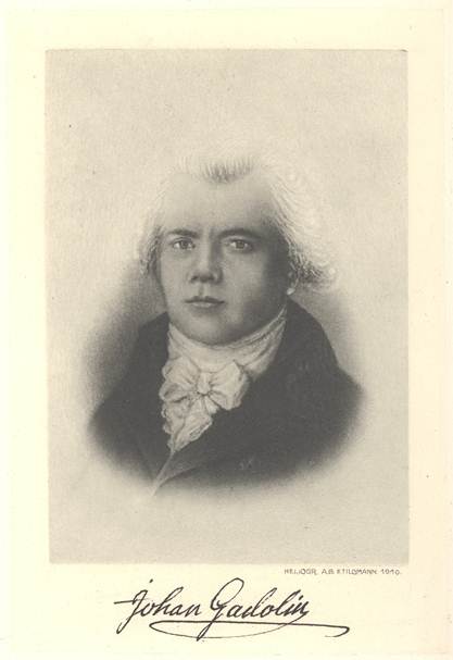 Johan Gadolin (1760-1852) (Fig. 1) was born in Åbo (in Finnish Turku) on June, 5, 1760, and he was the son of Jacob Gadolin (1719-1802), a Professor of Physics and Theology at the Swedish National University of Åbo, also called the Kunliga Akademin i Åbo (“Building the Future”, 2005), and Elisabeth (née Browallius) (1737-1793) (Tigerstedt, 1877, p. 97).