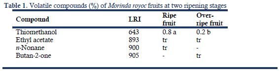 Volatile compounds of Morinda royoc L. fruit at two ripening stages