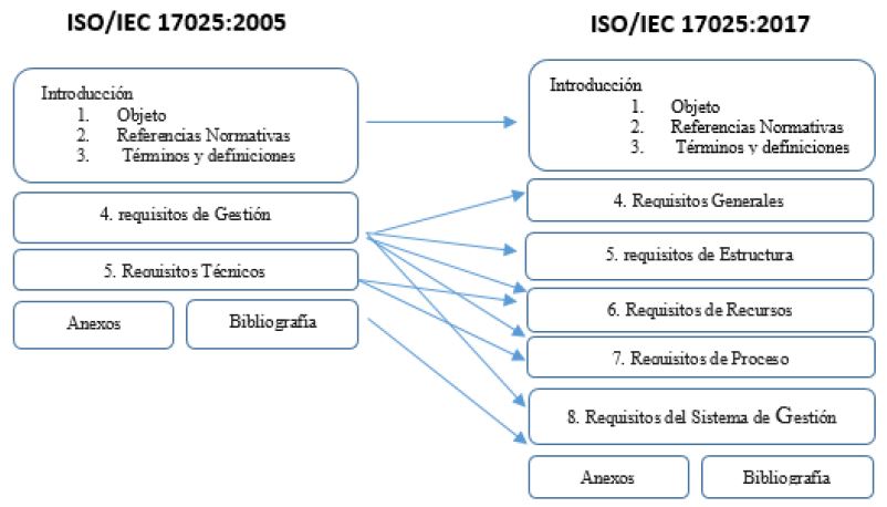 En el 2017, la norma ISO/IEC 17025, tuvo una transformación muy importante en su estructura, adaptándose a las normas de alto nivel para sistemas de gestión de International Standards Organization (ISO). Presenta cambios fundamentales, respecto a la edición anterior, como el enfoque y estructura basados en el proceso, el nuevo requisito de imparcialidad y confidencialidad y el pensamiento basado en el riesgo (Stojković et al. 2021, ONN, 2018a), como parte esencial del SG del Laboratorio. Permite cierta reducción de los requisitos prescriptivos y su sustitución por aquellos basados en el desempeño, tiene mayor flexibilidad en los requisitos de procesos, procedimientos, información documentada y responsabilidades organizacionales. Además, entre otros términos, incluyó la definición de "Laboratorio", (ONN, 2018b).