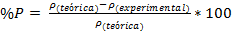 Se estimó también el porciento de Porosidad Total (%P) de las muestras mediante la expresión: