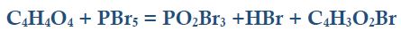 Gal developed another procedure for preparing dibromo acetic anhydride, based on the reaction between monobromo acetyl bromide and finely ground sodium acetate (Gal, 1870). The mixture of both reagents was heated and distilled, and the passing liquid redistilled. The latter began boiling at 137 oC and continued doing so up to 245 oC, where it remained stationary. At this temperature a colorless liquid began to pass; chemical analysis indicated it contained, by weight, 18.0% carbon, 1.8% hydrogen, and 61.3% bromine, corresponding to dibromo acetic anhydride, C8H4Br2O6. Gal believed that the reaction proceeded as follows: the first stage generated monobromo acetic anhydride, which by the action of heat, decomposed into acetic anhydride and dibromo acetic anhydride (Gal, 1870).