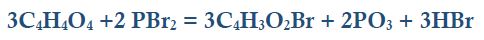 This procedure had several shortcomings: As shown by the equation, only one of the five equivalents of bromine available was used to produce the required substance. In addition, the preparation of phosphorus pentabromide was arduous and the separation of acetyl bromide was always incomplete. After many trials, Gal was able to develop a much more efficient procedure for preparing acetyl bromide: A mixture of three equivalents of glacial acetic acid and two equivalents was put in a retort and reacted with six equivalents of bromine, added dropwise. The ensuing reaction was very lively, and each drop of bromine decolorized immediately. The products of the reaction were acetyl bromide, phosphorus trioxide, and HBr gas, as shown by the following equation (Gal, 1863b):