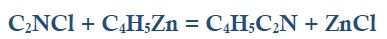 Consequently, Gal reacted cyanide chloride gas with zinc ethyl and obtained a liquid boiling at 98 oC, identical with the previous cyanhydric ether (Gal, 1868):