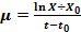 ) donde µ es la velocidad de crecimiento, X es la concentración celular en unidades de densidad óptica final, X0 es la concentración celular en unidades de densidad óptica a tiempo cero, t es el tiempo final y t0 es el tiempo inicial.