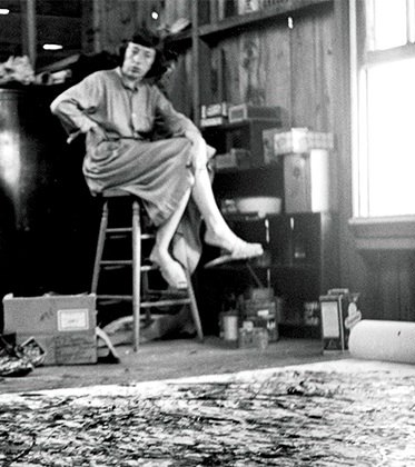 A la frase que encabezaba el reportaje de la revista Life se le podría yuxtaponer el famoso comentario que la propia Lee Krasner (1978) atribuye a su profesor Hans Hofmann, precursor del expresionismo alemán: “This is so good. You would not know it was done by a woman”. Lo que hoy nadie duda es que su obra ocupa un lugar propio en la historia de la pintura. Aunque en aquel momento, como señala Estrella de Diego (2015, p. 12) en su historia de las Artes visuales, su lugar en alguna de aquellas fotografías, como podemos ver en esta otra mitad de la imagen anterior, sea el de observadora desde un discreto segundo plano: la que mira frente al que sabe que le están mirando; el que está frente al que no está. Como tantos otros artistas que han vivido y trabajado en el lado B de la historia, Krasner quedó entonces excluida del archivo de la modernidad, construido desde una visión de raza, género y clase social.