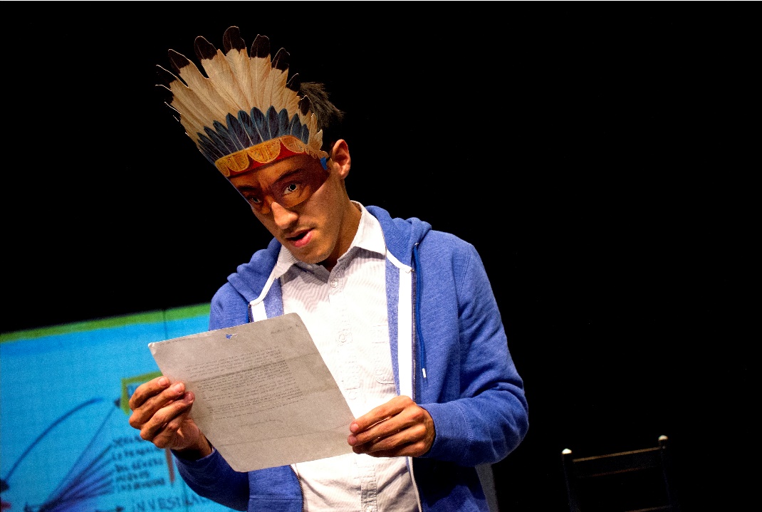 Los performers del grupo generalmente se dirigen frontalmente al público a la manera de conferencias performativas que nos interpelan a nivel emocional e intelectual. El estilo actoral evita la elaboración técnica y emocional, lo cual crea un efecto de naturalidad y franqueza en la exposición. En este estilo expositivo y “no matrizado” de actuación reside gran parte del juego planteado por Lagartijas, ya que la aparente naturalidad con la que se nos presentan los testimonios produce un efecto de verdad gracias al cual el espectador fácilmente puede llegar a creer que lo escenificado sucedió tal cual se dice[7]. No obstante, como ha señalado Rodríguez en entrevista, estos testimonios se presentan con recursos claramente teatrales, valiéndose, por ejemplo, de sencillas máscaras de cartulina y utilería reciclada: “La idea de poner momentos teatrales en algo que parece confesional es para generar una especie de extrañamiento. Si el público ve a alguien actuando con una máscara, quizás se pregunte sobre qué tan cierto es lo que está viendo” (Rodríguez, citado en Prieto Stambaugh, 2016, p. 223).