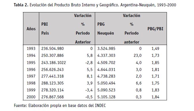 Taranda, D. (2005) Neuquén: las características de su producto bruto geográfico y la dinámica de la ocupación según los censos de 1991 y 2001