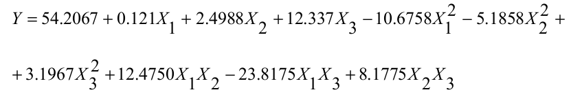(01)where: Y1 represents the expected asparaginase activity; X1 is the concentration of yeast extract; X2 is sucrose concentration; X3 is the concentration of asparagine.