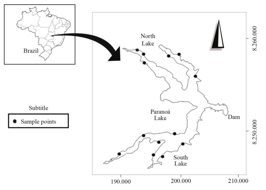 The study was conducted in the Paranoá Lake (15°48’S; 47°50’W, Figure 1), an urban reservoir, occupying approximately 18% of the territory of the Federal District, Brazil (Mattos, Altafin, Freitas, Cavalcanti, & Alvez, 1992), with depht maximum 40m and about 111km perimeter. The Paranoá was created in 1959 from the damming of streams in the region, aiming to improve climate conditions in the region, promote recreation and for landscaping purposes (Ferrer & Del Negro, 2012; Ferrante, Nancan, & Netto, 2001).