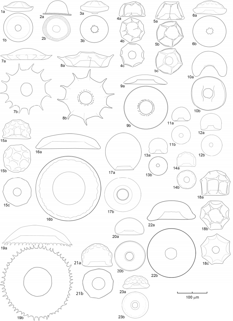 Deflandre (1928: 215), Figures. 128-137.