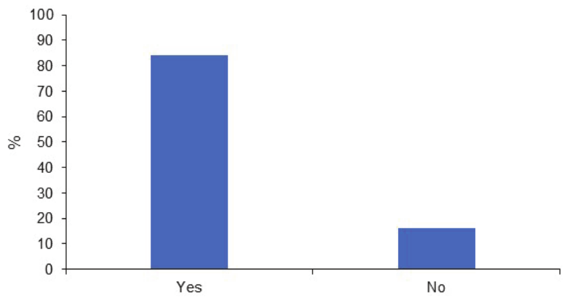 The Figure 3 shows the distribution of responses about the use of artificial models in practical classes of human anatomy. It can be noted that 84% of medical schools make use of artificial models, while 16% affirmed not to use.