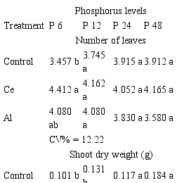 On the other hand, it is estimated that plants mycorrhized by Al have maximum absorption of Zn at 24.36 mg dm-3 of P2O5, showing a linear increase only in Fe content with added P. It is estimated that the concentrations of P, Ca, Mg, Mn, Cu and Na in plants mycorrhized by Al would have the minimum absorption in 14.53; 22.52; 25.30; 21.81; 27.44 and 28.62 mg dm-3 of P2O5 respectively.