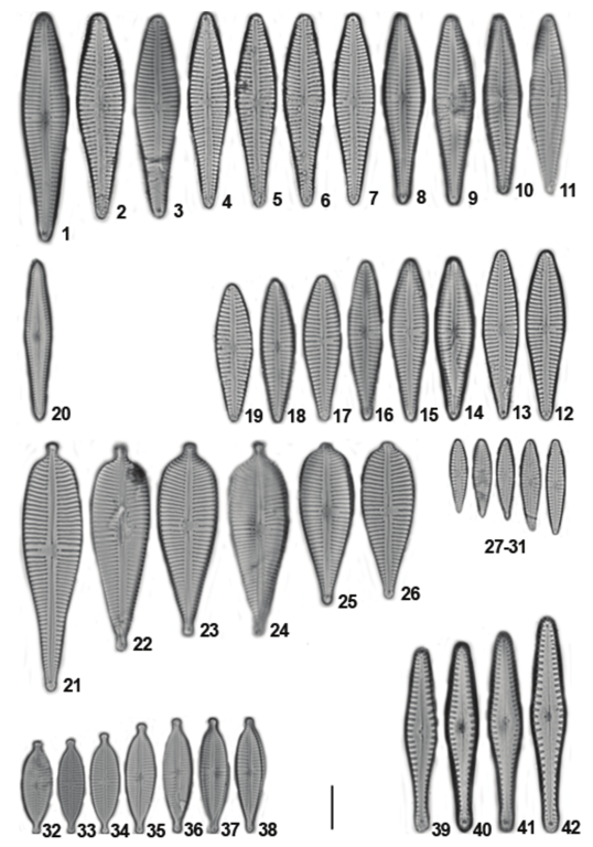 Gomphonema costei Metzeltin and Lange-Bertalot in Lange-Bertalot, Iconogr. Diatomol. 5: 115, pl. 154, fig. 7-12, 1998 (Figure 2/ 39-42).