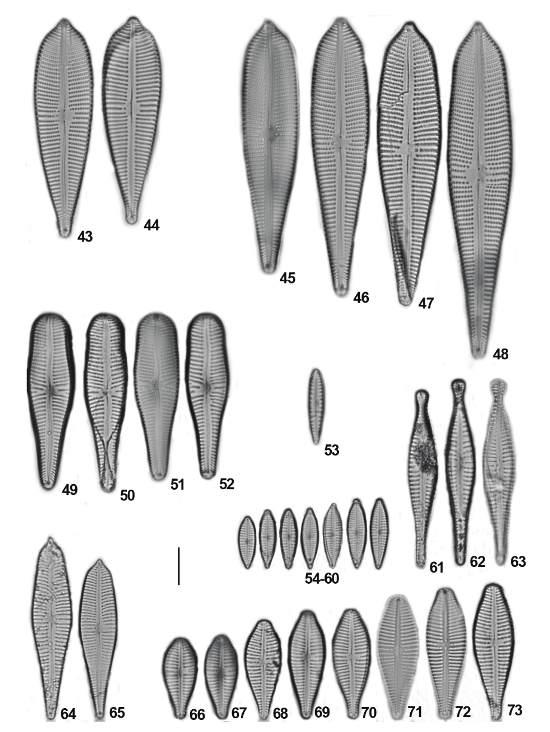Gomphonema salae Lange-Bertalot and Reichardt in Lange-Bertalot, Iconogr. Diatomol. 5: 548, pl. 157, figs. 3-5, 1998 (Figure 3/ 64-65).
