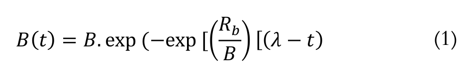 Rb is the maximum production rate achieved during the biogas production (mL day-1) and λ is the latency period of the production process (day).