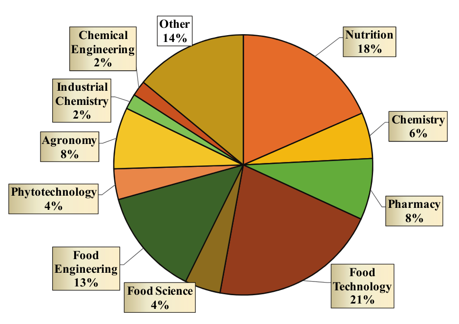 The first three areas mentioned above add up to the conception of a safe food with food characteristics in accordance to current legislation. Food Technology is a multidisciplinary area that uses the areas of chemistry, biochemistry, nutrition, pharmacy, among others to promote management techniques and technological changes that improve the conditions of safety, quality, health and respect for the environment. Applied to the food area, Nutrition is concerned with the promotion/recovery/maintenance of a healthy life through the use of a balanced diet. Food Engineering deals with the study and application of unitary and fermentation techniques for the design, storage and food transportation. The interaction between the three areas is important, where Food Engineering promotes the production process, Food Technology takes care of the management and application of appropriate techniques, and Nutrition evaluates the nutritional quality of this food, having greater representativeness of formation in the published articles.