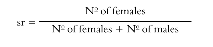For sex ratio based on the methodology proposed by (Bowen & Stern, 1966), calculated using the formula: