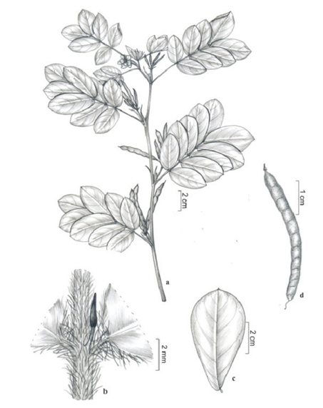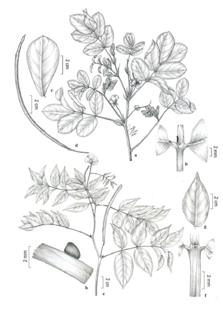 The species can easily be recognized in the area by leaves with 4 pairs of lanceolate to elliptical leaflets; petiolar extrafloral nectaries; zygomorphic flowers and dry, plane-compressed, little curved fruits.