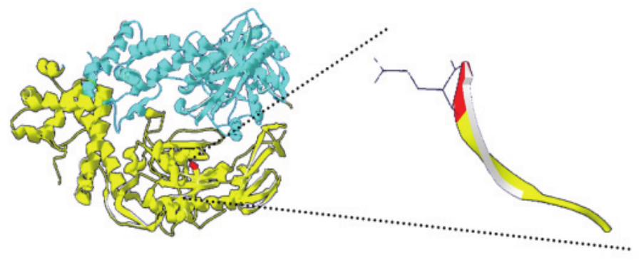 The energy of force field to the wild primase (Asp) 241 was -29,880.172, however after the mutation, this energy reduced to -29,791.828, ΔΔG = 88,342. This result suggests that this positive mutation changes may foment a destabilization of the structure.