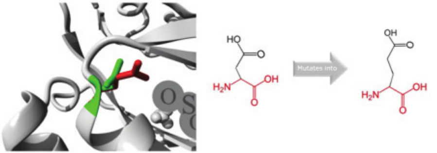 The mutation of the residue aspartic acid by a glutamic acid may occur naturally due to a misrepair on the DNA replication and by a substitution of the third nucleotide of the codons GAU and GAC to GAA to GAG, corresponding to aspartic acid and glutamic acid, respectively. The in silico analysis suggested that these mutations in PriL may cause destabilization on its structure interfering with replication mechanisms of Sulfolobus solfataricus. In addition, the mutation may alter the interactions with other molecules, such as salt bridges.