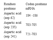 Table 1 summarizes the residues that were mutated and their respective positions in the mRNA. The aspartic acid (Asp) is encoded by the GAU and GAC, while glutamic acid (Glu) is encoded by the codons GAA and GAG. The substitution of uracil by adenine in the codon GAU or the substitution of cytosine by guanine in the codon GAC results in a nonsynonymous mutation (Graur & Li, 2000 ).
