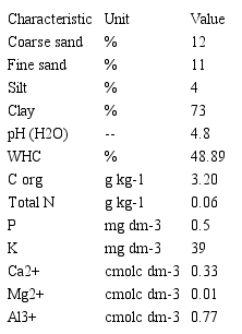 Stock cultures were activated in R2A broth (Reasoner & Geldreich, 1985) for 18 hours at 30°C. After repeat washing with sterile saline, the strains were inoculated (2 x 106 CFU g-1) into 30 g of sterile soil (Table 2), previously contaminated with diesel oil (20 mL kg-1). The humidity and the C:N:P ratio were adjusted to 60% of the maximum water holding capacity and 125:10:1, respectively.