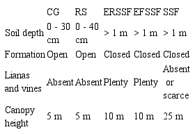Thus, the vegetation types are floristically distinguished in a group containing the sampling units of EFSSF, ERSSF, SSF, and CG; and another with the RS sampling units. In the first one, EFSSF and ERSSF form a unique system and SSF and CG environments present themselves individually, however, more similar to each other than to the SR environment. Thus, GC has a composition more similar to EFCG, ERSSF, and SSF vegetation types in relation to SR.