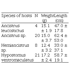 Keywords: armored catfish ectoparasites, freshwater fish, Loricariidae.