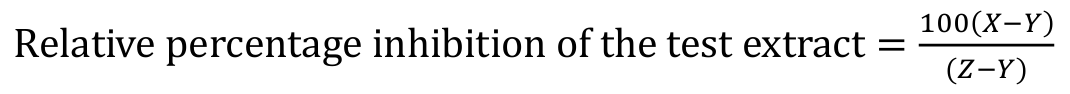 The relative percentage inhibition of the leaf extracts with respect to the positive control was calculated as described by Kumar & Arya (2006).