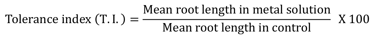 Tolerance index (TI): was determined with the formula given by Iqbal and Rahmati (1992) (Ahmad et al., 2012) (Equation 1).
