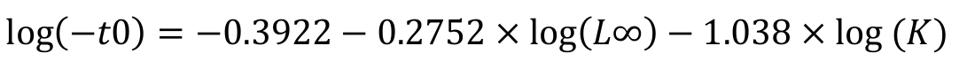 For the calculation of the theoretical age parameter at zero length (t0), the equation of Pauly (1981) was used (Equation 2):