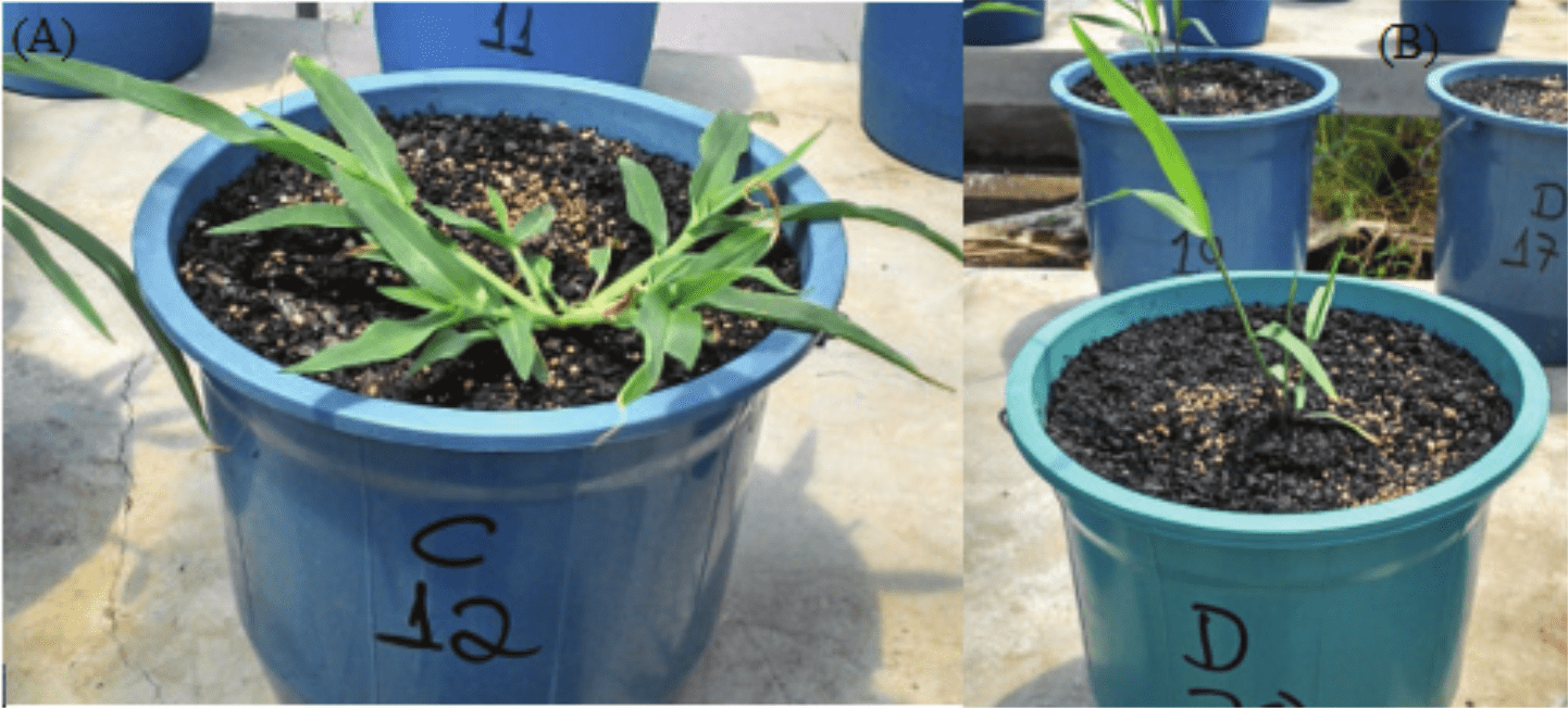 Urochloa plantaginea (alexander grass) is a plant of African origin introduced in Brazil in colonial times (Kissmann, 1997). A common plant in rainfed environments, it is described by Velho, Crusciol, Velini, Castro, and Borghi (2012) as a highly aggressive invader, which can cause serious injury to the industry, especially in rainfed crops such as soybeans and corn. However, even when dealing with a plant usually found in non-flooded environments, U. plantaginea completed its life cycle under the three different amounts of water in the soil, developing even under the shallow water table (Figure 2A).