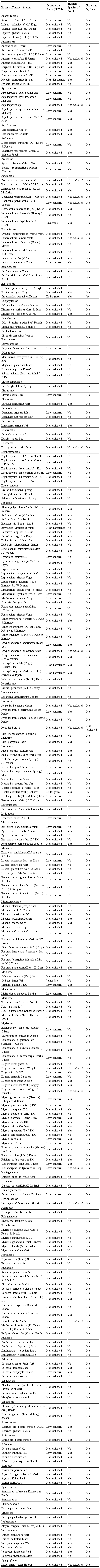 From the 249 species recorded in our study, 91 are native from Brazil. Four of the species are recorded as Near Threatened, two are Vulnerable and two are Endangered according to the IUCN Red List (International Union for Conservation of Nature [IUCN], 2019).