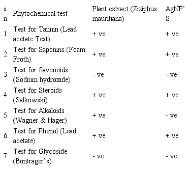 In Z. mauritiana plant aqueous extract alkaloids, steroids, saponins, tannins and phenols compounds are present. Flavonoids, glycosides are absent. While AgNp’s possess tannin, saponin, steroids and phenol. Flavonoids, alkaloids and glycosides are absent.