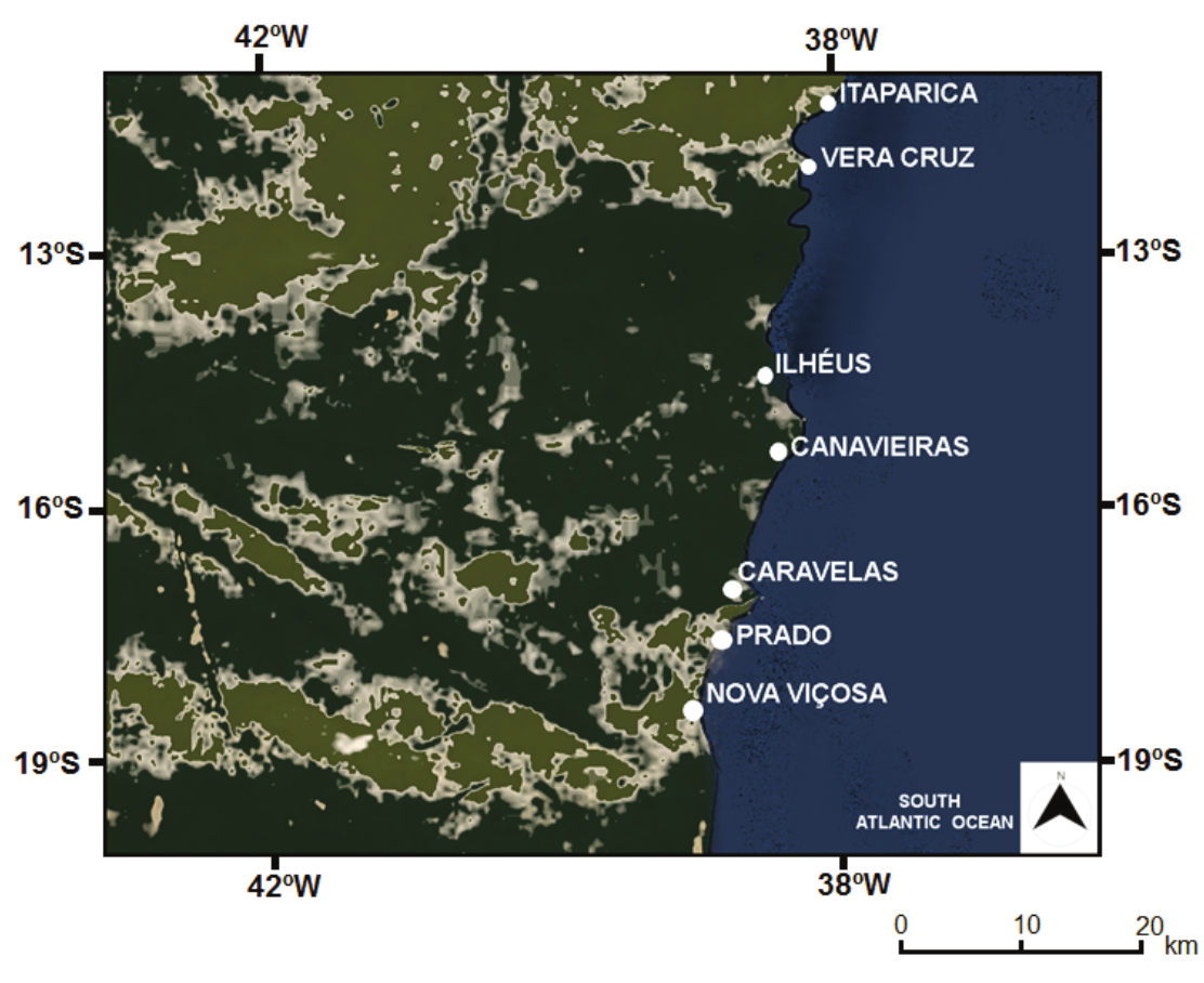 Dalbergia ecastaphyllum is a native species found along the east coast of the American continent, from South Florida (USA) to the South of Brazil and in West Africa (Carvalho, 1997). In South America, Brazil stands out for presenting records in a wide range of its territory, from the Amazon in the Northern region to the Atlantic Forest in the Southern. In the Northeast region, particularly in the state of Bahia, it is located the longest area with this species across its coastline. D. ecastaphyllum is known as the main resin source Brazilian red propolis (Bueno-Silva, Marsola, Ikegaki, Alencar, & Rosalen, 2017), an important natural product with nutraceutical and pharmacological properties studied over the years, such as anti-inflammatory, antioxidant, antiseptic and antineoplastic properties (Freires, Alencar, & Rosalen, 2016).
