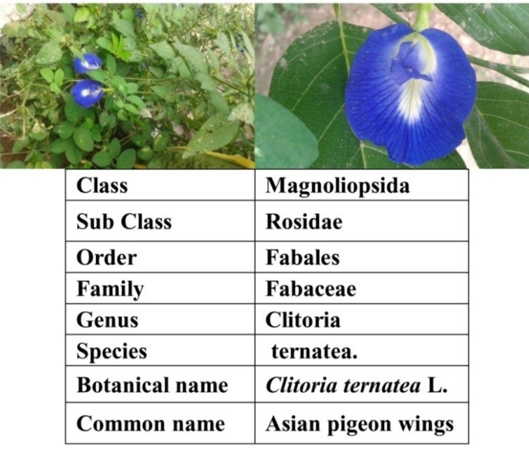 The leaves of Clitoria ternatea L., family Fabaceae (Figure 1) were collected from river banks of Uyyakondan Thirumalai, Tiruchirappalli, Tamilnadu, India. The leaf extract was obtained by adapting a modified method described by Umeh, Oluma, and Igoli (2005). The samples were cleaned, shade dried and powdered. 100 grams of powdered leaf sample were weighed and boiled with 1 L of distilled water for 10 min. at 70ºC. The plant extract was filtered and evaporated to dryness and further used for analysis. The plant’s identity was confirmed anatomically and morphologically based on its pharmacopoeial monograph at the Rapinat Herbarium and Centre for Molecular Systematic, St. Josephs College (Autonomous), Tiruchirappalli, Tamilnadu, India where, the voucher specimen number (AAM 001) was assigned and deposited.