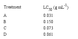 Further, based on the results in Figure 1 and Table 2, it can be inferred that milk A was the most toxic among the analyzed products, with a LC50 of 0.031 g mL-1, and milk B was the least toxic milk, with LC50 value of 0.15 g mL-1. Results of LC50 concentration are widely used as parameters in the definition of doses concentrations-1 of compounds or substances of interest to be evaluated in subsequent toxicity studies.
