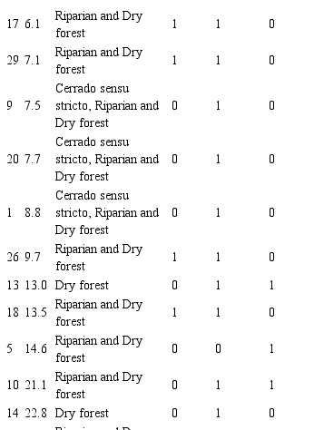Capuchins are likely to be prevalent and persist over the long term in more rural landscapes in comparison with less hospitable urban landscapes, given the greater potential for dispersal among patches and groups (Estrada et al., 2012), as well as their considerable behavioral and ecological flexibility. In an analysis of the similarity of mammal communities among isolated forest patches in the fragmented landscape of the southwestern Cerrado, medium- and large-sized mammals (including S. libidinosus) were able to move between patches regardless of the size, degree of isolation or vegetation structure of these forest remnants (Cáceres, Nápoli, Casella, & Hannibal., 2010). In this case, movement would be facilitated by the permeability of the pasture matrix. A number of other studies (Michalski & Peres, 2005; Sorensen & Fedigan, 2000) have also recorded other species of capuchins moving over large distances in fragmented landscapes, often along unconnected corridors in both grassland and degraded forest habitats.