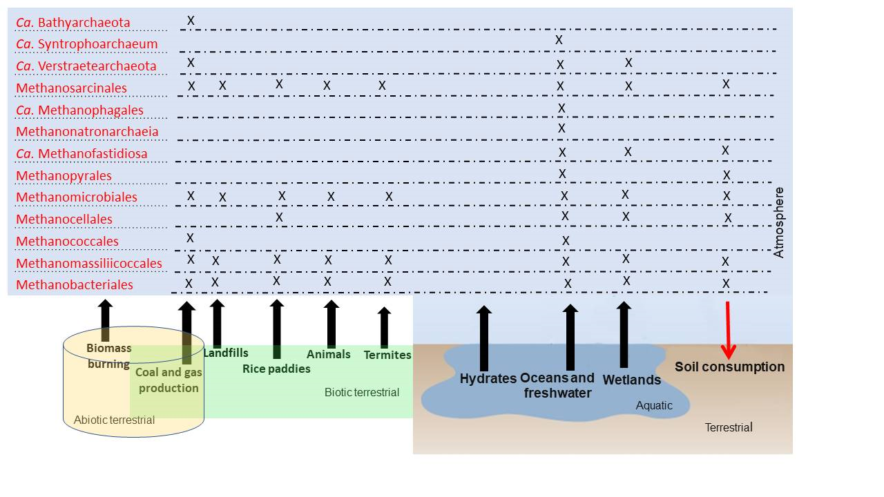Within the Archaea group, methanogenic archaeas are found in aquatic and terrestrial environments, which are fundamental in the conversion of organic matter into methane, a gas that has a potential use as renewable source of energy, which is also considered as one of the main agents of the greenhouse effect. Environmental sequence of data suggests that they are common constituents of anaerobic environments across the globe, ranging from hypersaline to freshwater sediments, acidic to alkaline soils, invertebrate to vertebrate gastrointestinal tracts, industrial bioreactors, hydrocarbon-rich deposits, and rice paddies at temperatures ranging from extreme thermal to near freezing conditions (Figure 1) (Evans et al., 2019).