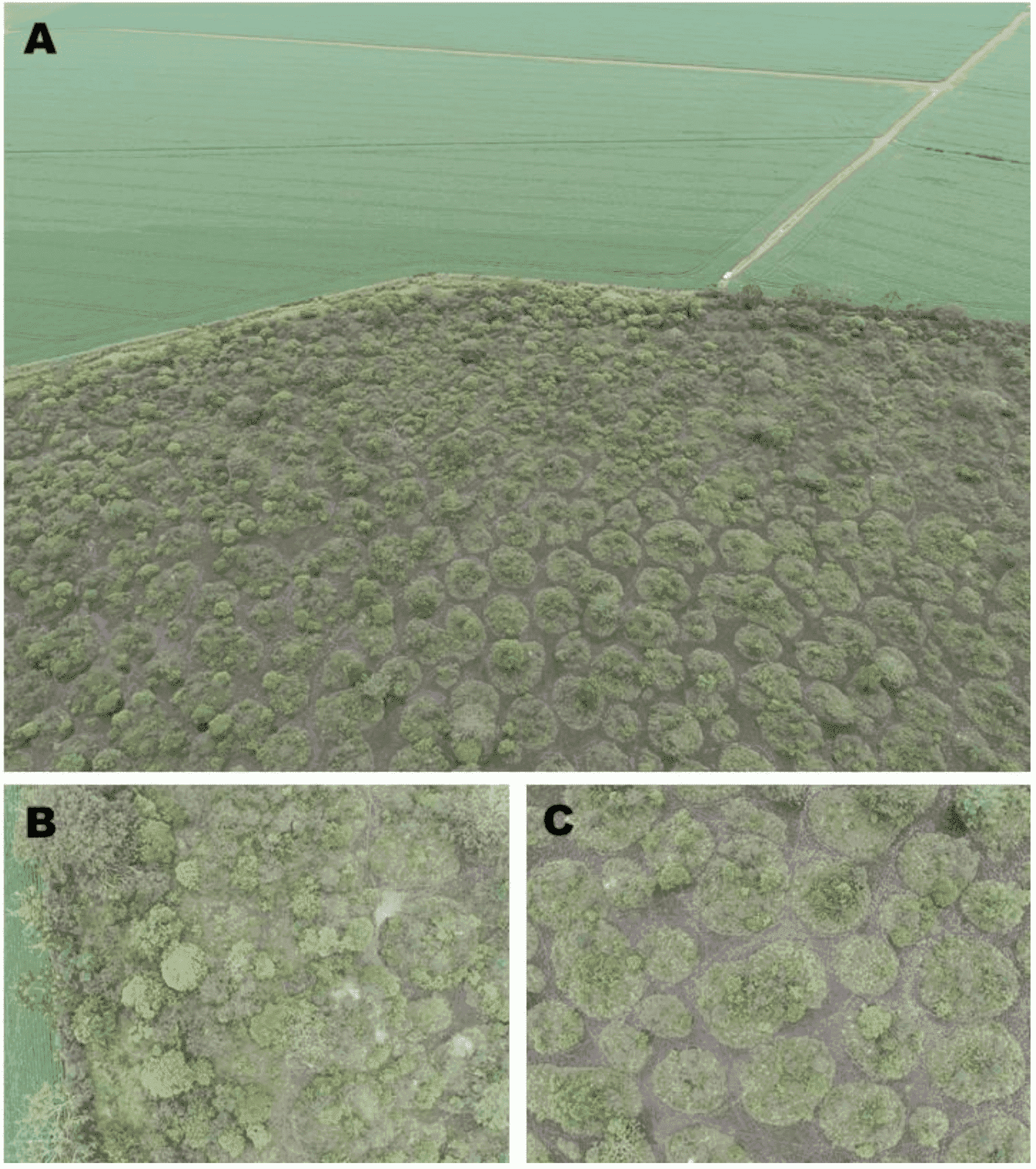 Due to their environmental fragility, important role in the water maintenance and wildlife refuge, campos de murundus were defined as Permanent Preservation Area, by Goiás State Law - nº 16,513 (Goiás, 2007). However, the campos de murundus have been affected by anthropogenic disturbances due to the expansion of the agricultural frontier, and the construction of drainage channels to promote the subsurface outflow of soil water, making these ecosystems suitable for agriculture or pasture. Therefore, these areas were simply replaced by crops, or became very reduced and fragmented, since they are in flat relief, in fertile and wetter soils (Rosolen, Oliveira, & Bueno, 2015).