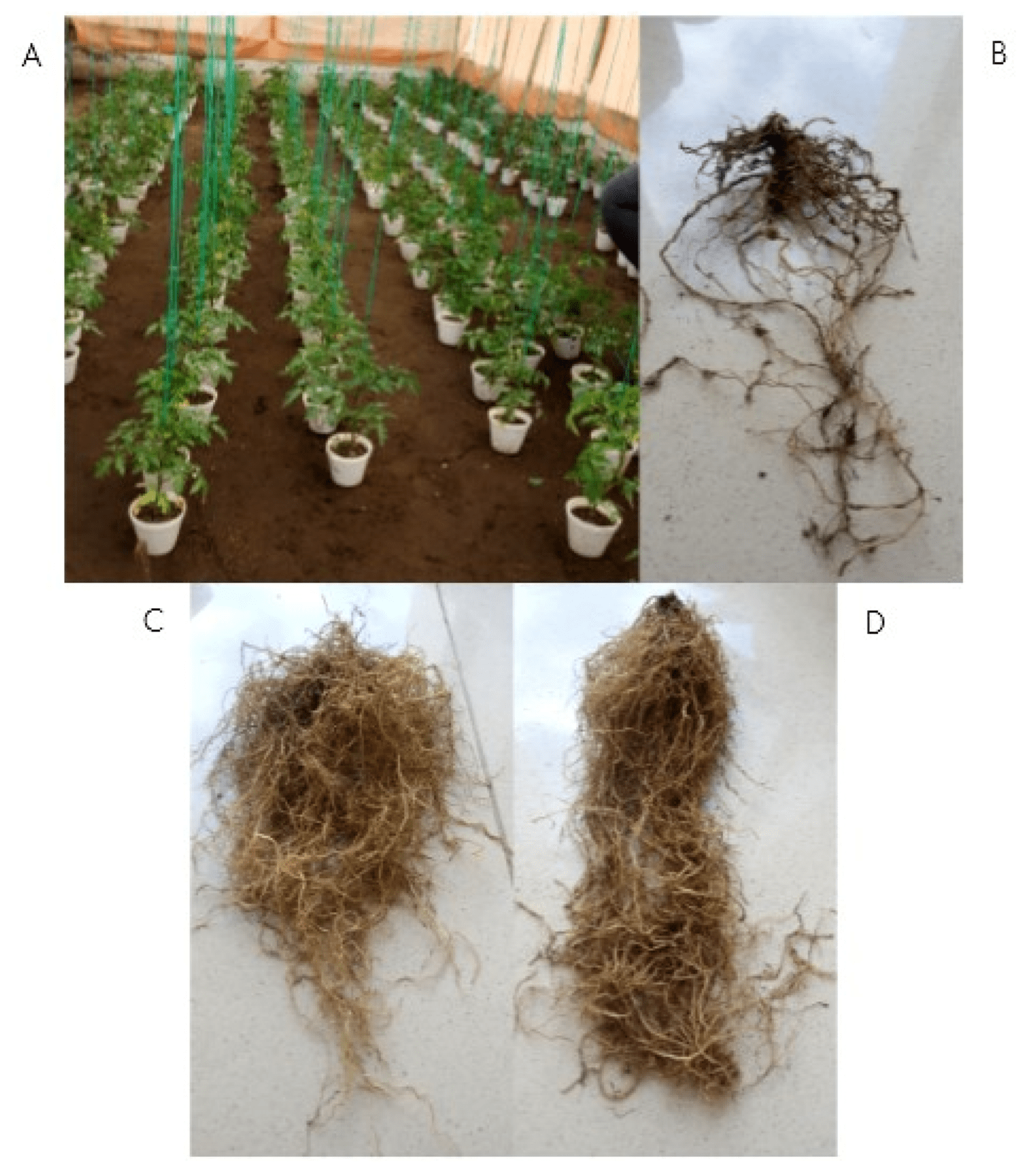 Other studies show that organic matter is beneficial not only when combined with biological controllers, but also with plants with nematicidal action such as neem. As evidenced by the work on sustainable management of root knot disease in tomato with neem cake and Glomus fasciculatum in Aligarh, India, the nematicidal potential of the organic matter and the neem cake and the biological agent, G. fasciculatum and its positive influence on tomato growth, was determined when inoculated individually, as well as in combination, while providing sources of nutrients for the proper growth of plants, as the intensity of the disease caused by the knot nematode decreased (Akram, Rizvi, Sumbul, Ansari, & Mahmood, 2016).