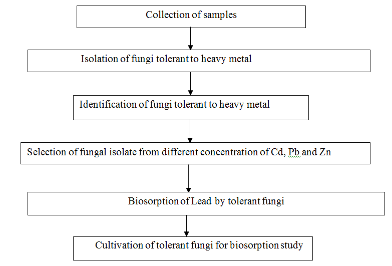 This study involves isolation, identification of fungi tolerant to heavy metal from refuse dumpsite soil, screening of tolerant fungi against different concentrations of cadmium, lead and zinc and biosorption study of heavy metal by tolerant fungi. The tolerant fungi were culture in Saboraud dextrose broth (SDB) and the biosorption study was setup with 100ppm of lead The atomic absorption spectrophotometer (AAS) was used to monitored the concentration of heavy metal at intervals of 5, 10 and 15 days for biosorption potential of the fungi.