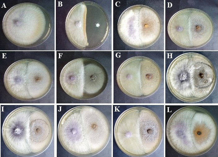 Keywords:Fungal isolationFungal isolation,Passiflora edulisPassiflora edulis,antagonismantagonism,molecular identificationmolecular identification,phylogenetic analysisphylogenetic analysis.
